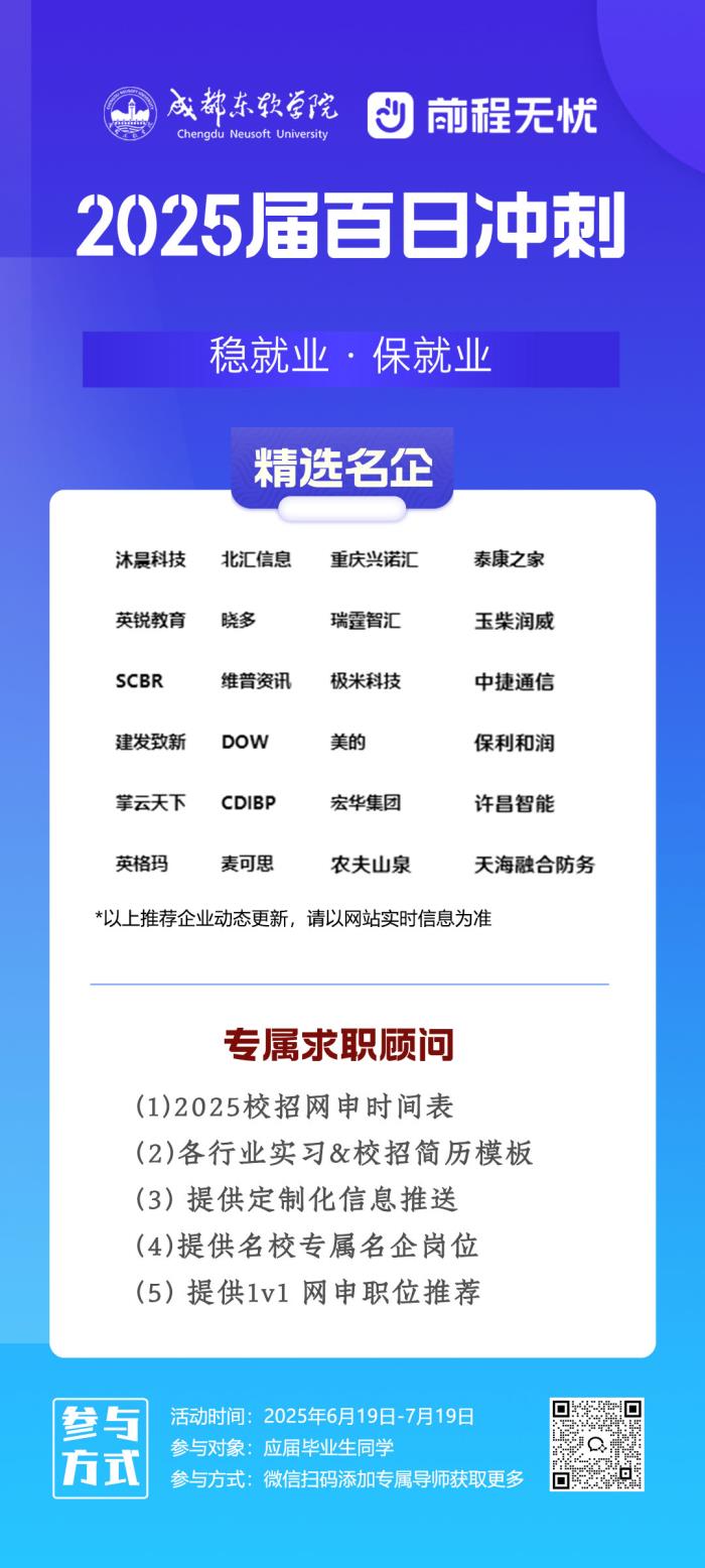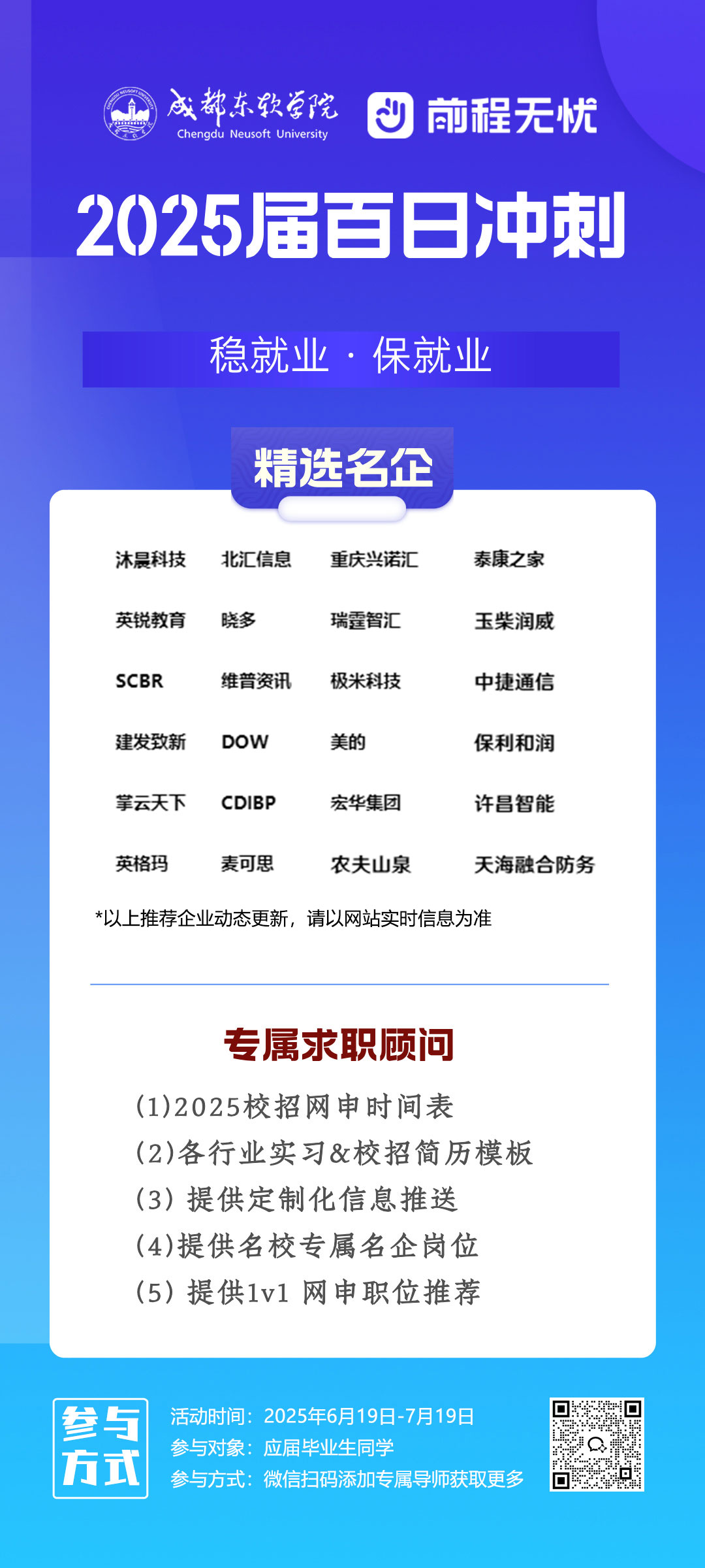 成都东软学院&前程无忧 2025届“百日冲刺”行动线上招聘会