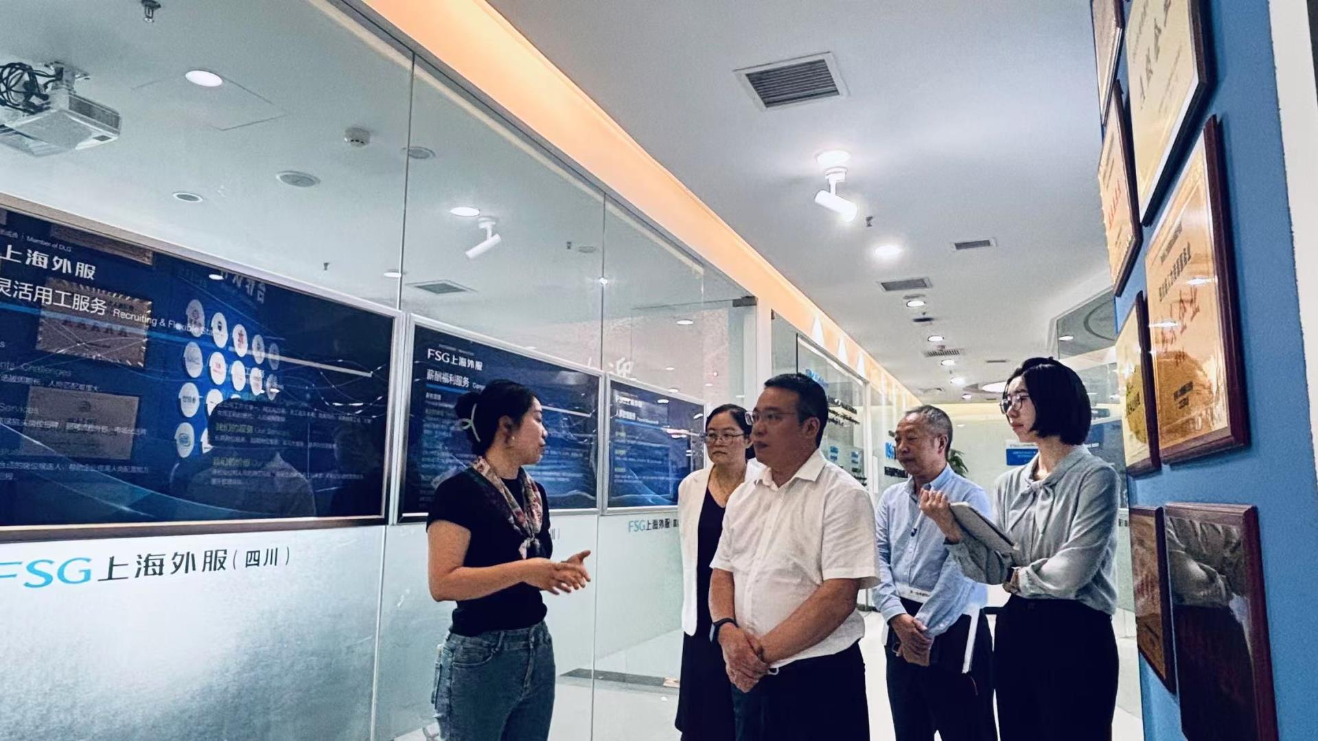 为了迎接审核评估,进一步加强校企合作,近日,学校副校长张兵一行前往上海外服(四川)人力资源服务有限公司(以下简称“上海外服”)进行走访交流。同行人员包括招生就业部副部长黄杰、人力资源管理系主任陈鹏以及审核评估办公室胡佳菁老师。