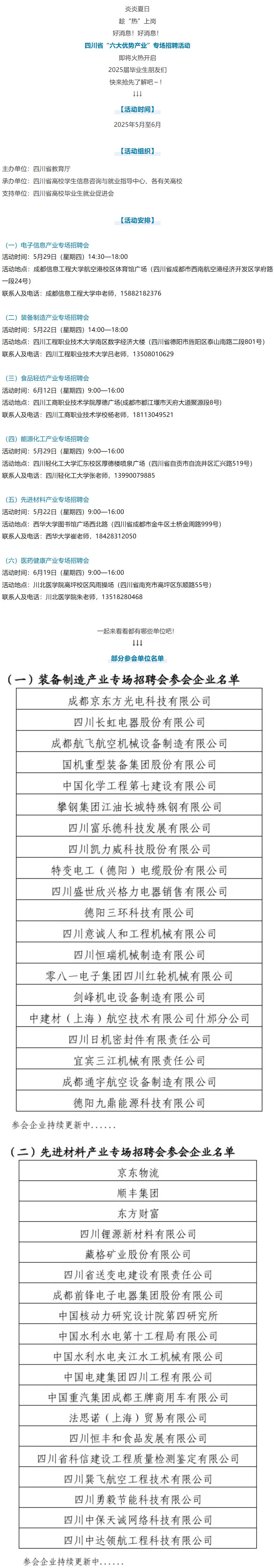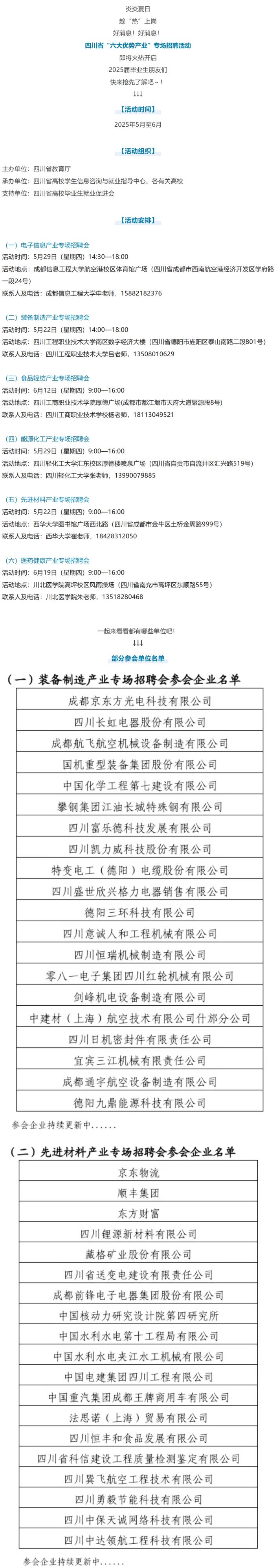 找工作的注意了!围绕四川省“六大优势产业”多场专场招聘活动即将开启~