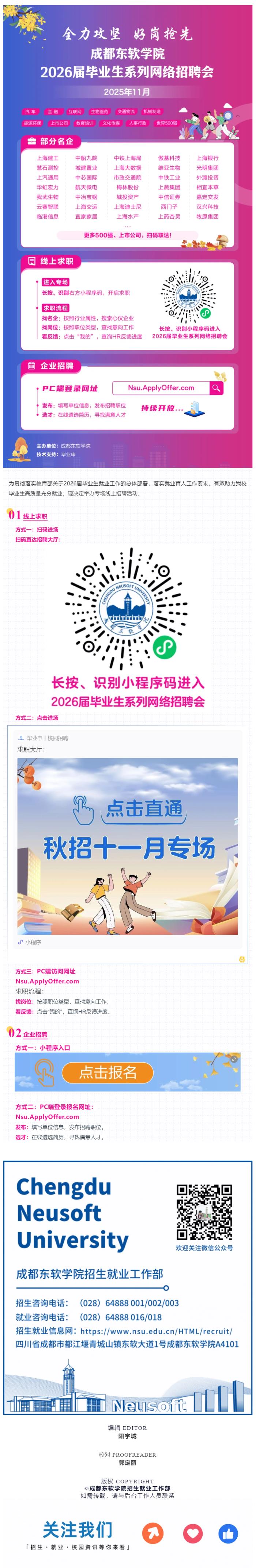 成都东软学院2026届毕业生11月专场网络招聘会