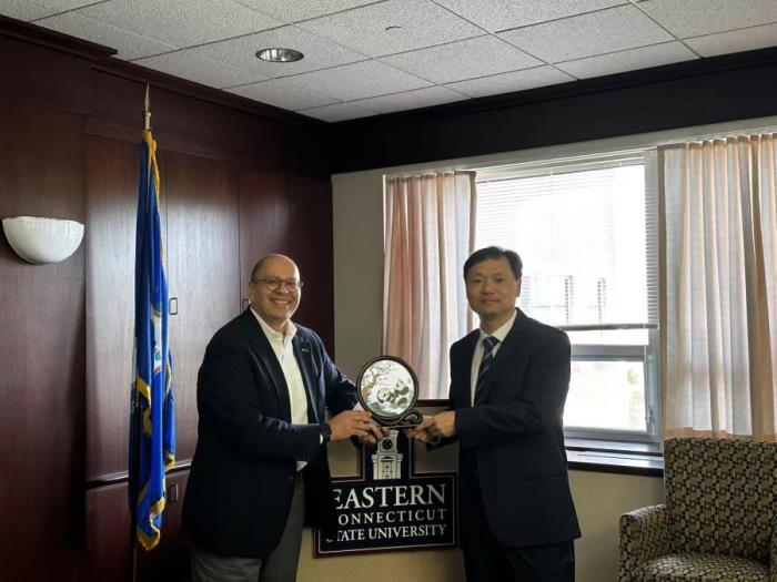 我校校长张应辉教授与东康涅狄格州立大学校长Karim Ismaili合影留念