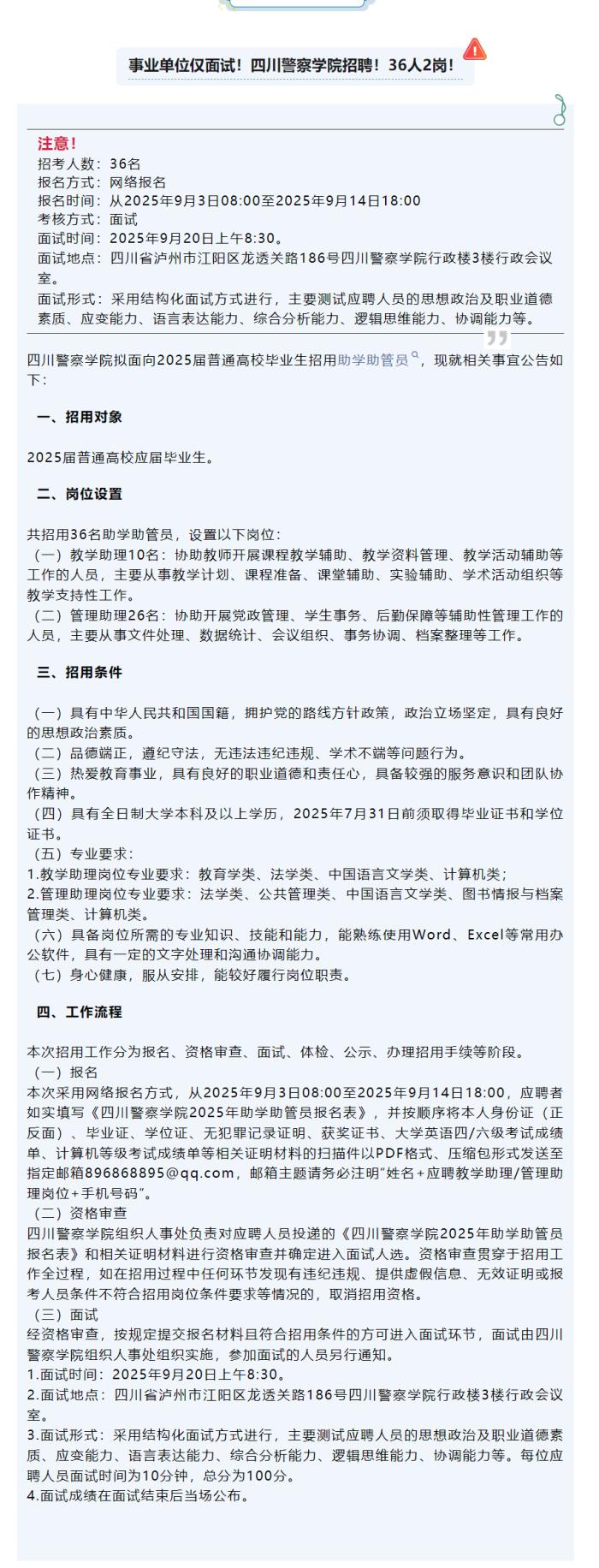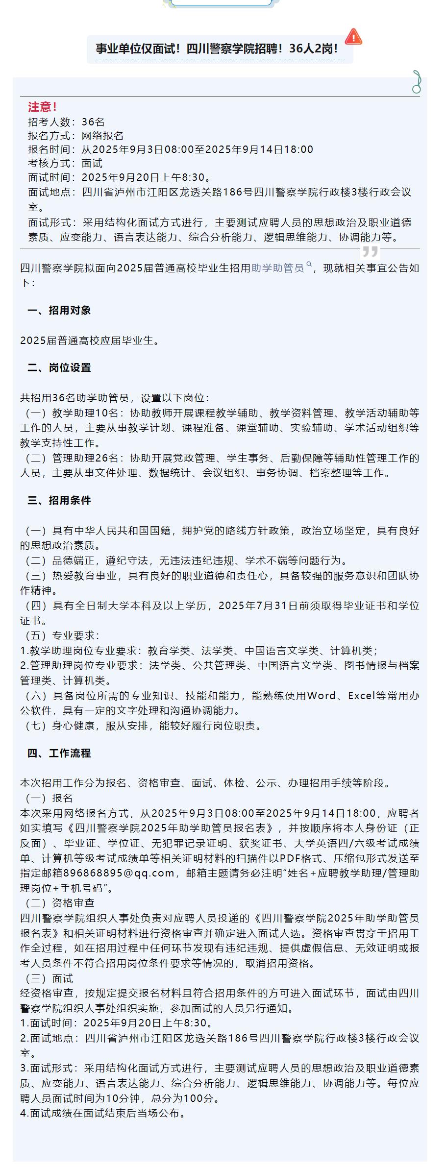 事业单位仅面试!四川警察学院招聘!36人2岗!